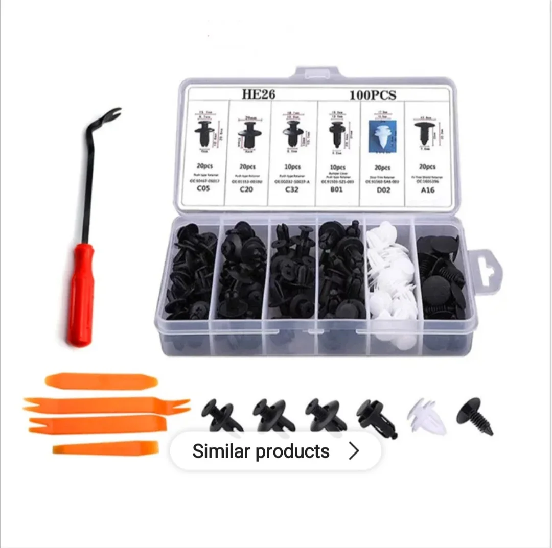 100 יחידות פגוש רכב קליפים מסמרות פלסטיק מחברים ערכת תושבת דחיפה עם גדלים סט מסמרות סיכת דחיפה אוטומטית עם מסיר אטבים